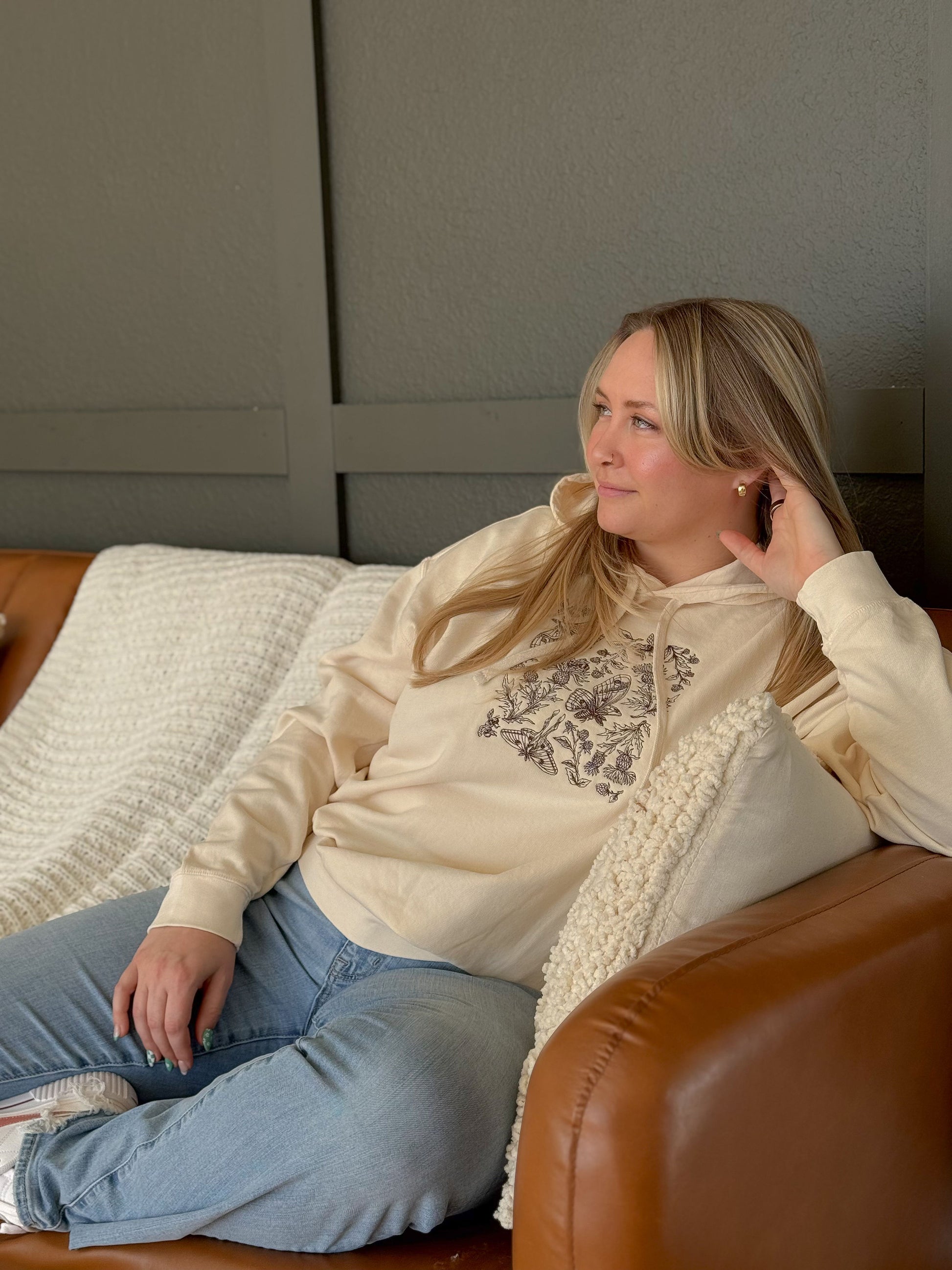 Light, cozy, and effortlessly stylish—this embroidered butterfly hoodie is stitched onto a Comfort Colors lightweight hoodie, making it the perfect year-round layer.